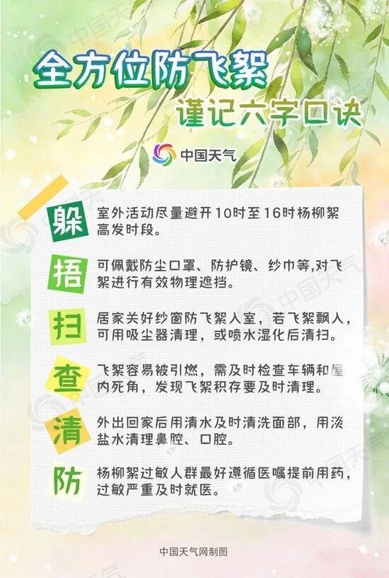 所以,周末打算出门的北方朋友,尤其是过敏体质的小伙伴,建议戴上口罩、护目镜等,尽量避开杨树、柳树密集的区域。如果不慎飞入眼睛或鼻腔,可用清水冲洗,不要用手揉搓。
