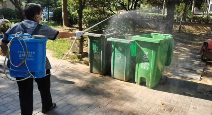 活动前期,网格员通过微信群、公告栏等渠道发布温馨提示,告知居民作业时间、作业区域及注意事项,避免农药残留影响居民生活,充分争取居民理解与配合。活动当天,工作人员携带背负式喷雾器等专业设备,对小区垃圾桶、绿化带、楼道、下水道等重点区域进行全方位喷洒消毒,确保消杀无死角、无遗漏。