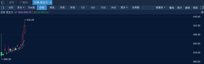 行情方面,铂期货主力合约在前一交易日强势涨停之后,16日再涨超2%;而钯期货主力合约在前一交易日涨超4.7%之后,16日再度收涨4.73%,携手铂期货刷新上市以来新高。而在海外市场,16日电子盘中,NYMEX铂金主力合约也创出2011年以来新高。